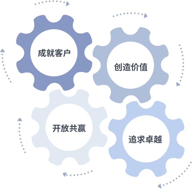 成就客户是一切决策的出发点,创造价值是衡量所有工作的标准,追求卓越是z6尊龙做事做人的态度,开放共赢是z6尊龙的格局也是最终的结果。价值观的齿轮环环相扣,推动着组织里的每个人不断向前。